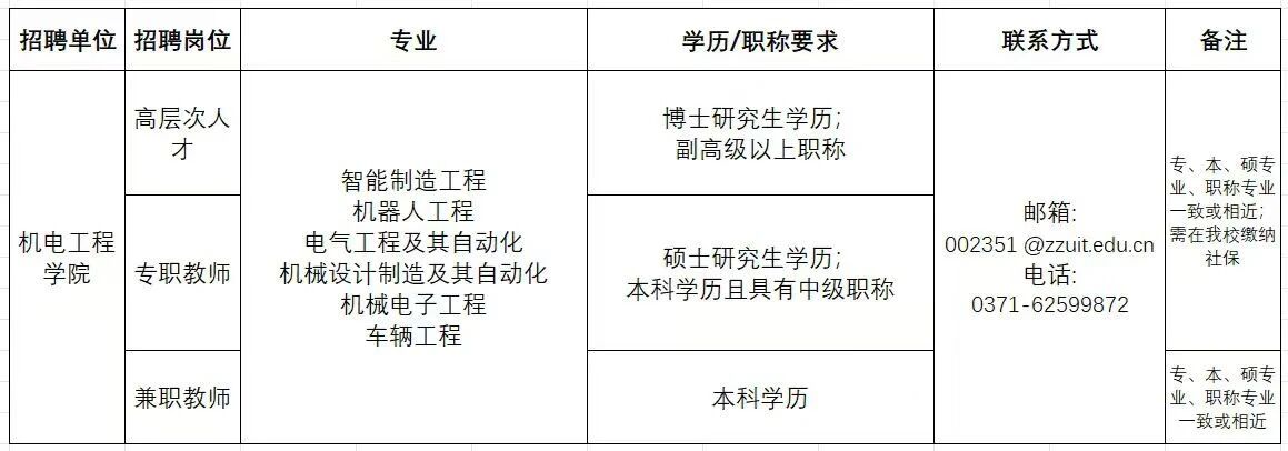 郑州工业应用技术学院机电工程学院2026年招聘高层次人才、专职教师、兼职教师公告