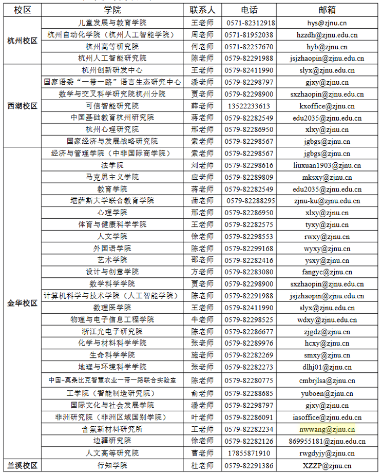 电子信箱:zhaopin@zjnu.edu.cn